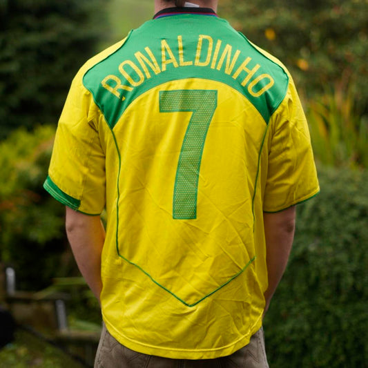 2004 Brazil Home Shirt by Nike - Ronaldinho #7. Size Medium