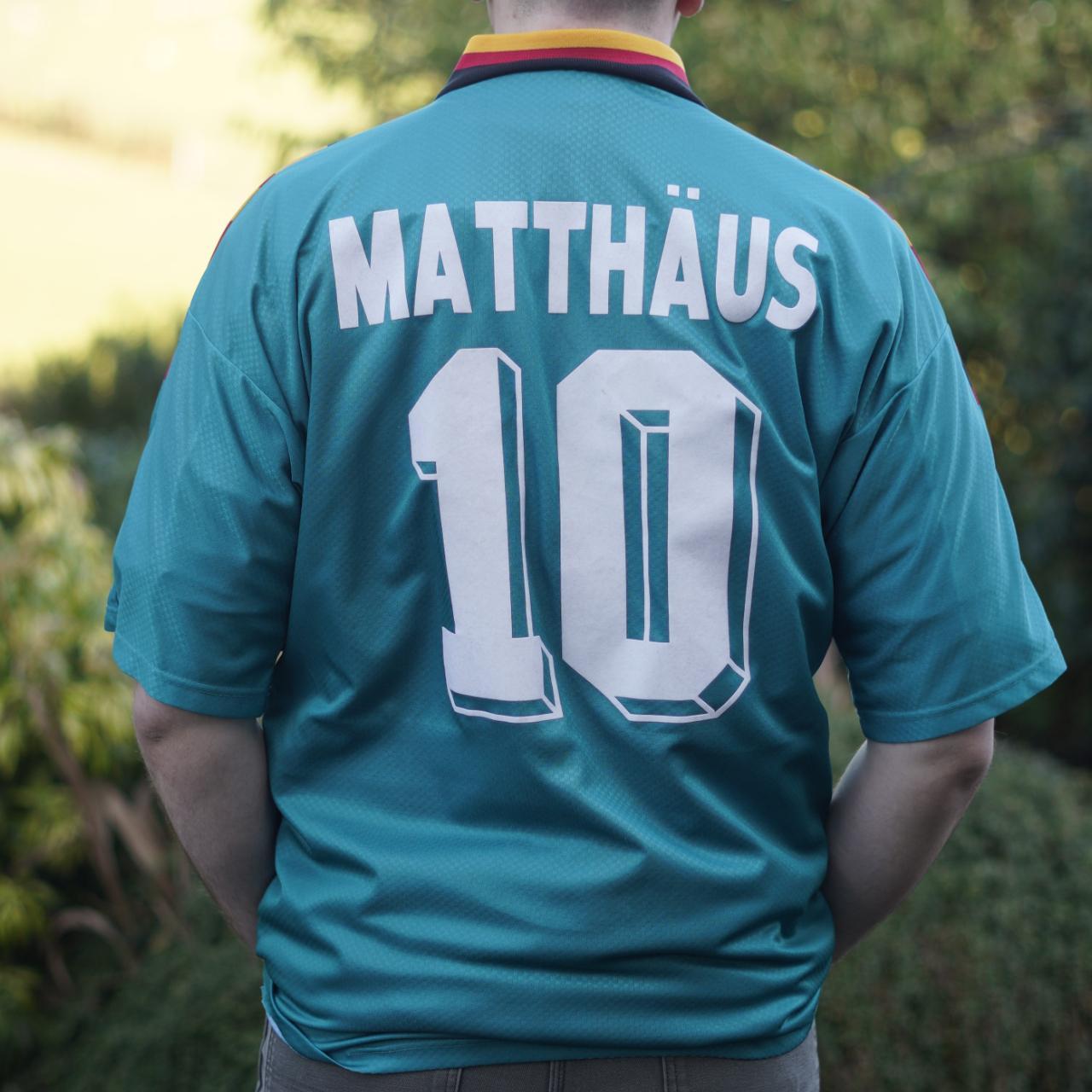 Unbelievable vintage Germany football shirt as worn during the 1994 World Cup by legendary player Lothar Matthaus. Iconic flag design across the shoulders, original felt nameset and Adidas spellout on the chest - it is all original and in great condition with no notable flaws. So rare, incredible nameset - near impossible to find a complete original like this!