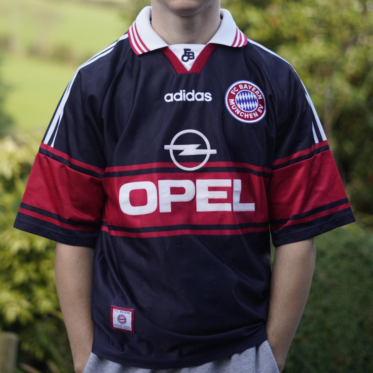 Classic Bayern Munchen football shirt from the late 90's as worn by Basler and Matthaus. Central Adidas spellout, large classic badge, Opel sponsor - this is a great shirt in fantastic condition for its age aside from some light bobbling here and there! Super baggy fit, such a cool design!